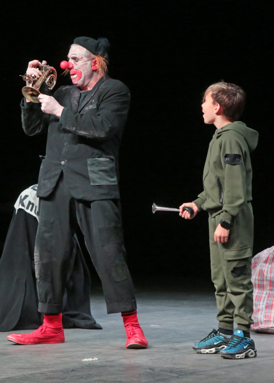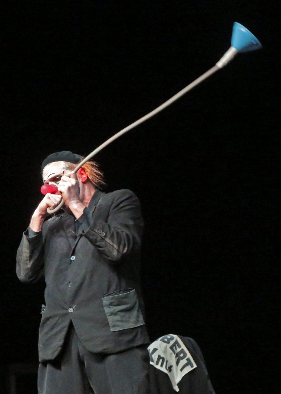 Albert Knüt Clown maîtrise le clown, la musique, le gag, les répétitions et se risque - façon clown - dans le chant, la danse, l'acrobatie, le mime, la magie... jusqu'à provoquer quelques catastrophes - bien sûr.