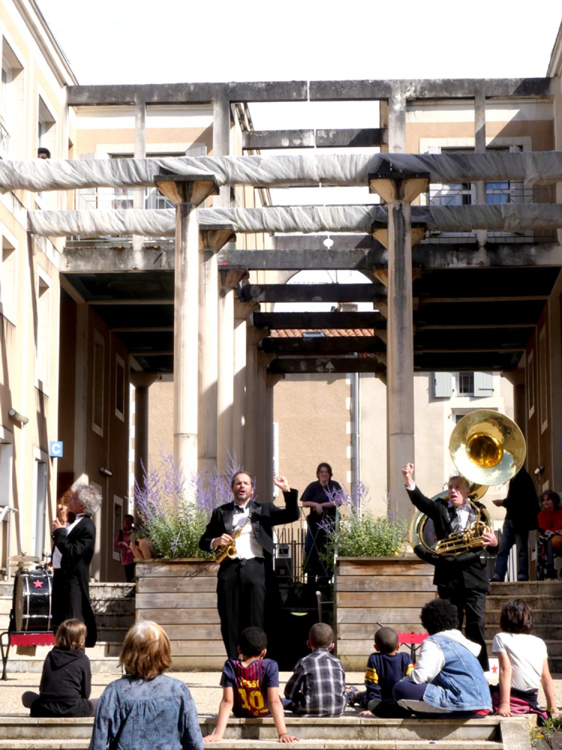La fanfare des 3 Monsieurs fait surgir au fil des notes une danse éphémère, une improvisation,