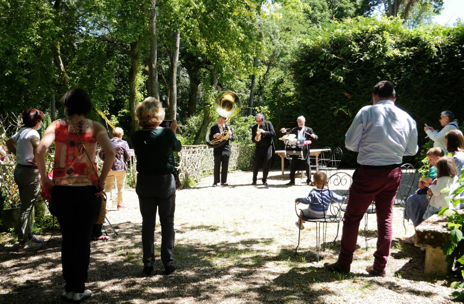 VISITE DES JARDINS. ...Montbazon se met au vert dans le cadre des « Rendez-vous aux jardins », La manifestation est initiée par Béatrice Tillier et Nancy Texier, deux personnalités portées par le désir de valoriser et préserver le patrimoine de la ville mais aussi de particuliers ouvrant aux visiteurs les portes de leur jardin enchanteur. Afin d' agrémenter cette promenade, l’événement accueille la Fanfare des 3 Monsieurs, un orchestre rempli d’énergie ayant la volonté d’amuser, de surprendre, d’émouvoir, de distraire et d’intriguer. Ces trois clowns-musiciens déambulent répandant dans l’air un doux parfum de poésie, disséminent çà et là des bouquets éclatants de notes colorées. La Nouvelle République 06/2021